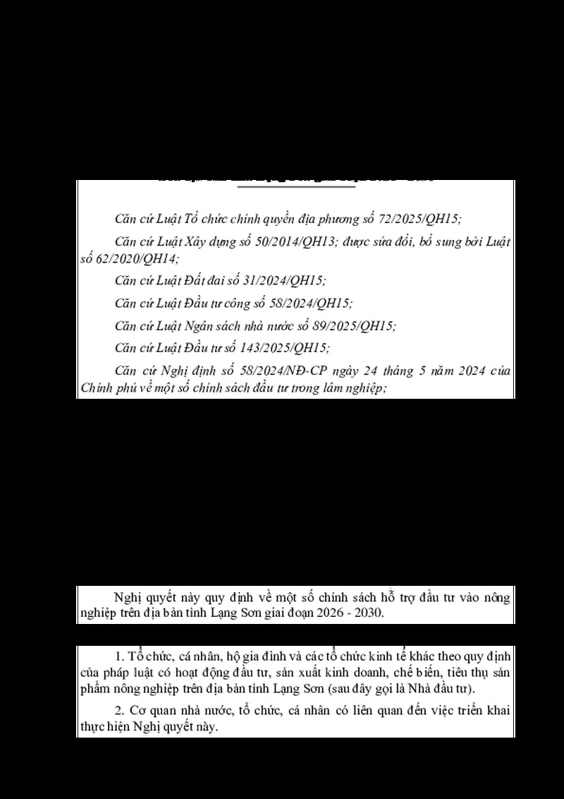 | Tiêu đề văn bản | Nghị quyết về một số chính sách hỗ trợ đầu tư vào nông nghiệp trên địa bàn tỉnh Lạng Sơn giai đoạn 2026 - 2030 | ||