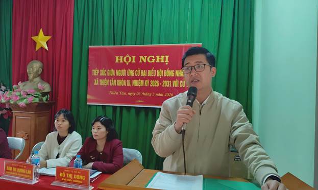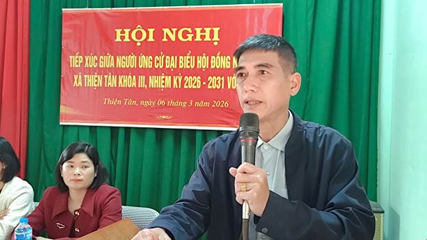 Thay mặt các ứng cử viên đại biểu HĐND xã Thiện Tân khoá III, nhiệm kỳ 2026 – 2031, Ông Vũ Huy Tùng, Uỷ viên BTV Đảng uỷ, Phó Chủ tịch UBND xã cảm ơn cử tri về các ý kiến trách nhiệm, tâm huyết vì sự phát triển chung của tỉnh cũng như trên địa bàn xã. Đồng thời tiếp thu và giải đáp làm rõ một số ý kiến, kiến nghị của cử tri