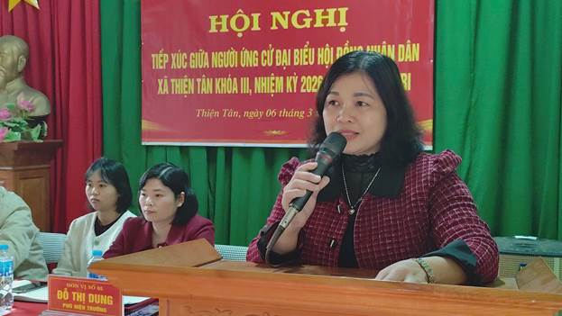 tưởng và đánh giá cao chương trình hành động của các ứng cử viên đại biểu HĐND xã; đồng thời kiến nghị các đại biểu khi trúng cử tiếp tục quan tâm đến việc chuyển đổi mục đích sử dụng đất trên địa bàn; công tác cải cách thủ tục hành chính; quan tâm làm đường nội đồng, đường trục xã, mương máng phục vụ tưới tiêu sản xuất, công tác y tế….