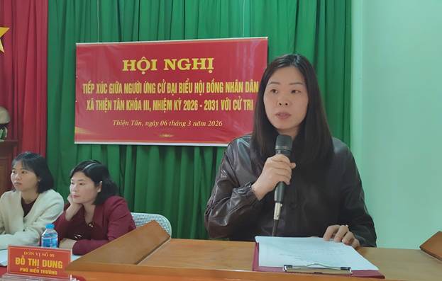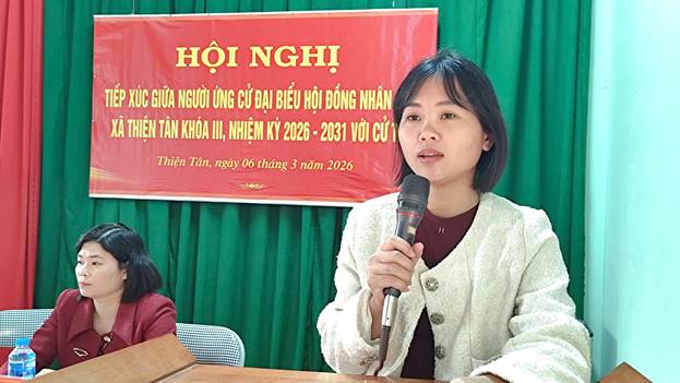 Sáng 6/3, các ứng cử viên đại biểu HĐND xã Thiện Tân khoá III, nhiệm kỳ 2026 – 2031, thuộc đơn vị bầu cử số 05 đã có buổi tiếp xúc cử tri vận động bầu cử tại thôn Dân Tiến.