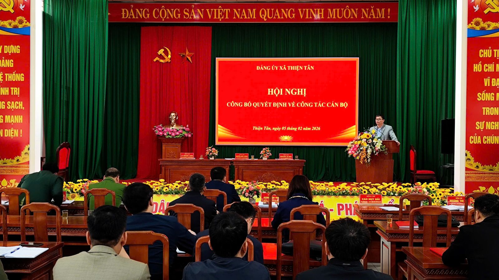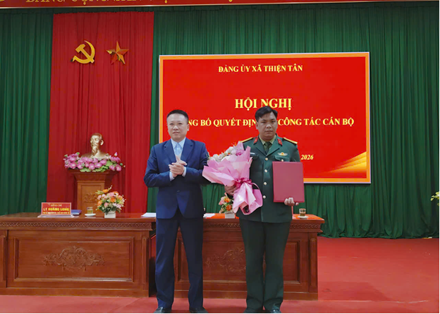 Sáng ngày 05/2/2026 Ban Thường vụ Đảng ủy xã Thiện Tân tổ chức hội nghị công bố quyết định của Ban Thường vụ tỉnh uỷ về công tác cán bộ, nhằm kịp thời kiện toàn cấp ủy, đáp ứng yêu cầu lãnh đạo, chỉ đạo nhiệm vụ chính trị, quốc phòng, an ninh trong giai đoạn mới, phù hợp với mô hình chính quyền địa phương hai cấp.