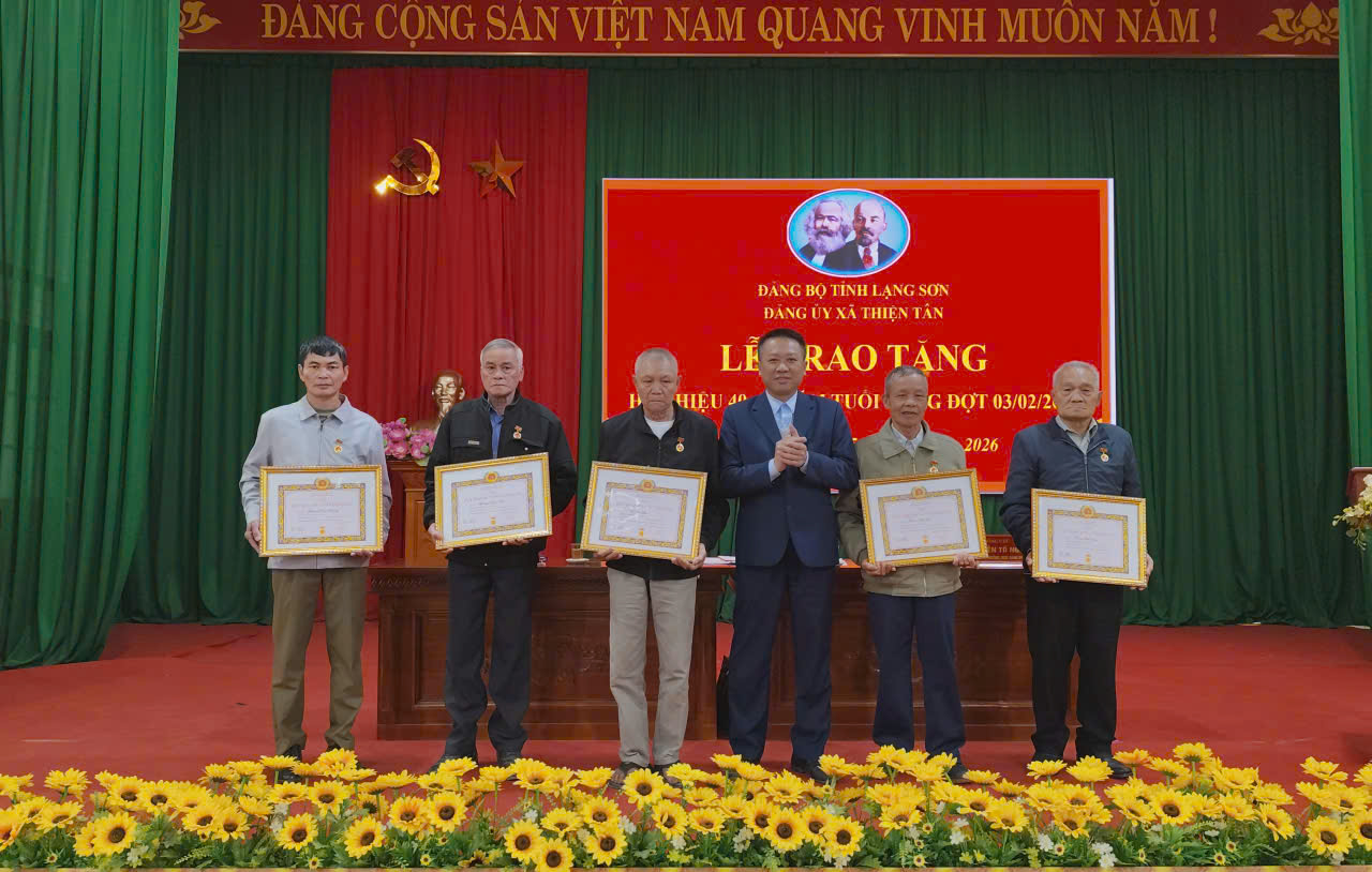 Ngày 05/02/2026, Đảng uỷ xã Thiện Tân tổ chức Lễ trao tặng huy hiệu Đảng đợt 03/02/2026 cho 06 đảng viên đang sinh hoạt tại các chi bộ trực thuộc Đảng bộ xã