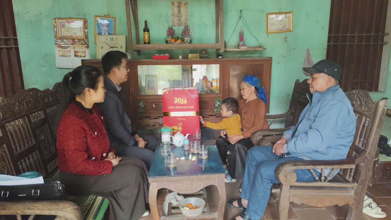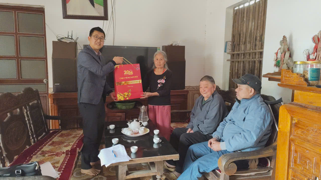 Chiều ngày 03/02/2026, Đoàn công tác do đồng chí Vũ Huy Tùng, Uỷ viên Ban thường vụ Đảng ủy, Phó Chủ tịch UBND xã cùng đại diện Văn phòng HĐND &UBND xã đã đến thăm, tặng quà, chúc tết các gia đình chính sách, người có uy tín và các hộ nghèo, hộ cận nghèo trên địa bàn.