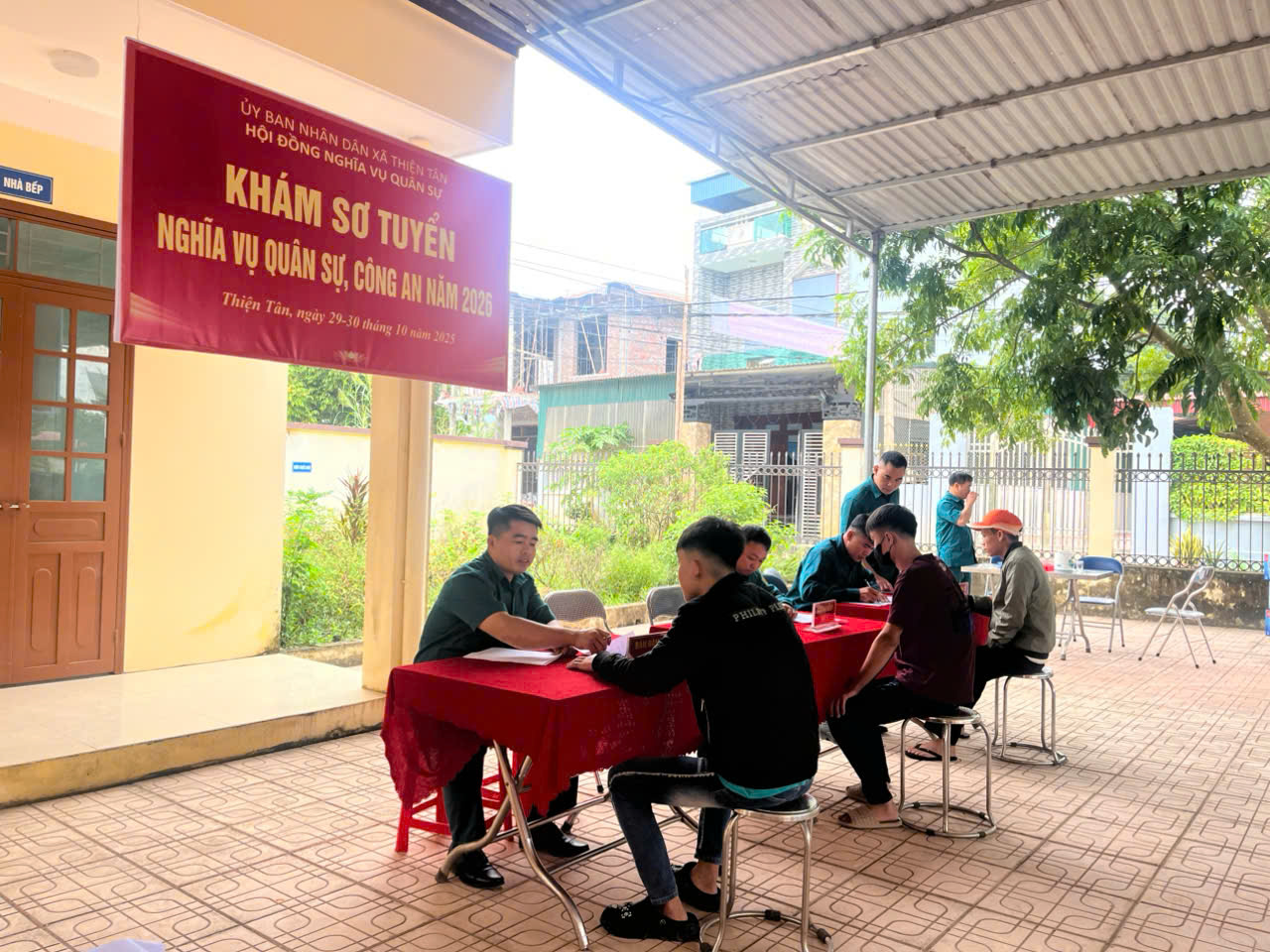 Trong các ngày 29-30/10/2025, tại Trạm y tế Thiện Tân, Hội đồng Nghĩa vụ quân sự xã Thiện Tân tổ chức khám sơ tuyển sức khỏe nghĩa vụ quân sự năm 2026 cho các nam công dân trong độ tuổi theo đúng quy định.
