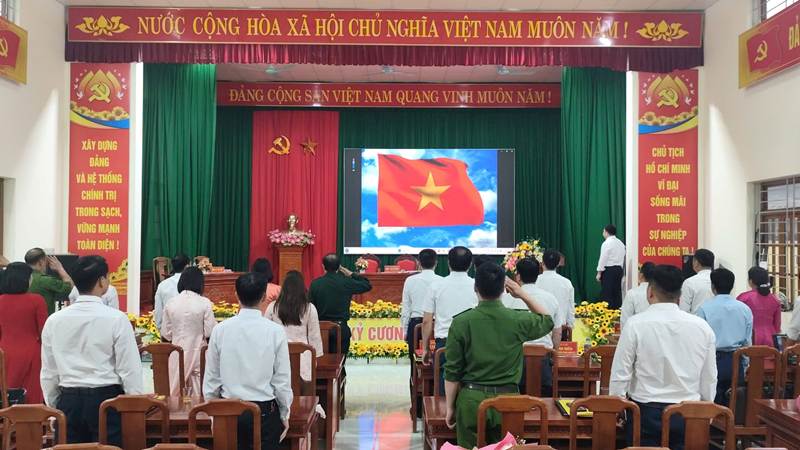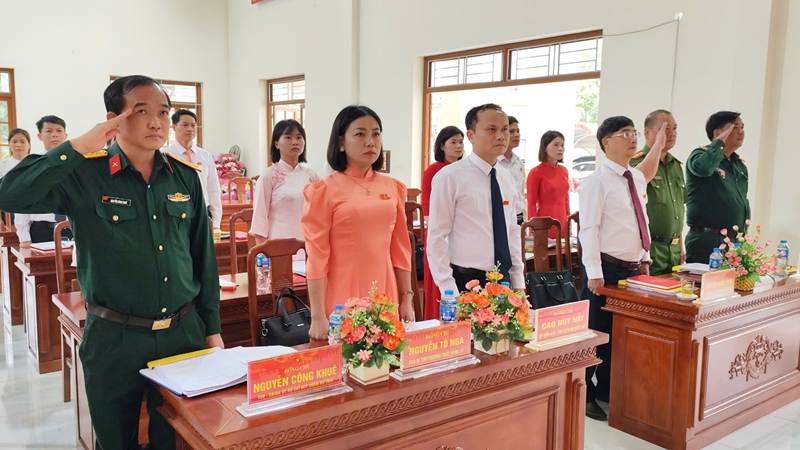 Đồng chí Nguyễn Quốc Thắng, Bí thư Đảng uỷ, Chủ tịch HĐND xã; đồng chí Hoàng Thị Hà, Phó Chủ tịch HĐND xã trao giấy chứng nhận Đại biểu HĐND xã khóa III, nhiệm kỳ 2026 – 2031 cho các đại biểu