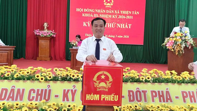 Kỳ họp thứ Nhất HĐND xã Thiện Tân khóa III, nhiệm kỳ 2026–2031 đã hoàn thành toàn bộ nội dung, chương trình đề ra, tạo tiền đề quan trọng để bộ máy chính quyền địa phương hoạt động hiệu lực, hiệu quả, đáp ứng yêu cầu nhiệm vụ trong giai đoạn mới, góp phần xây dựng xã Thiện Tân ngày càng phát triển.