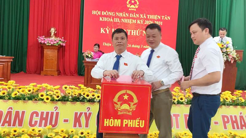 Với tinh thần dân chủ, khách quan, trách nhiệm, HĐND xã Thiện Tân đã tiến hành bỏ phiếu kín bầu các chức danh Chủ tịch, Phó Chủ tịch HĐND xã và Trưởng các Ban của HĐND xã; bầu Chủ tịch, các Phó Chủ tịch UBND và các Ủy viên UBND xã nhiệm kỳ 2026 – 2031.