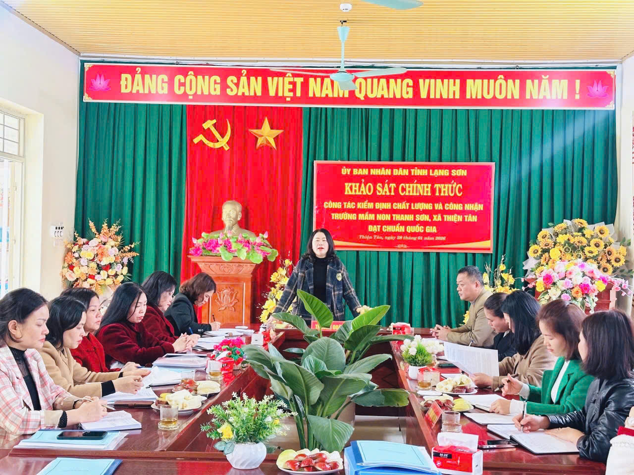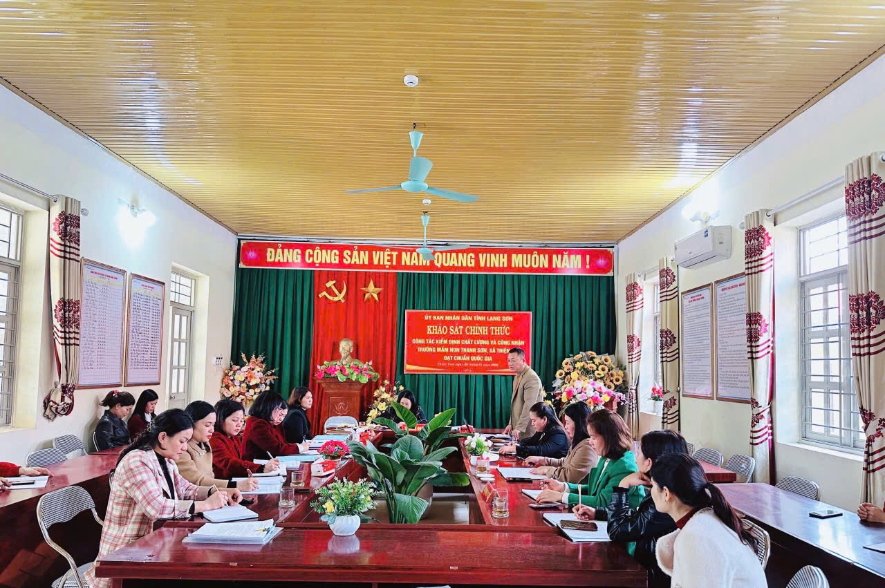 Thực hiện kế hoạch kiểm định chất lượng giáo dục năm 2025, vừa qua, Đoàn công tác của Sở Giáo dục và Đào tạo đã tổ chức khảo sát đánh giá ngoài đối với Trường Mầm non Thanh Sơn, xã Thiện Tân, nhằm đánh giá kiểm định chất lượng giáo dục cấp độ 2 và công nhận trường đạt chuẩn quốc gia mức độ 1. Tham gia cùng đoàn khảo sát có đại diện lãnh đạo UBND xã Thiện Tân, đại diện các phòng chuyên môn của xã.