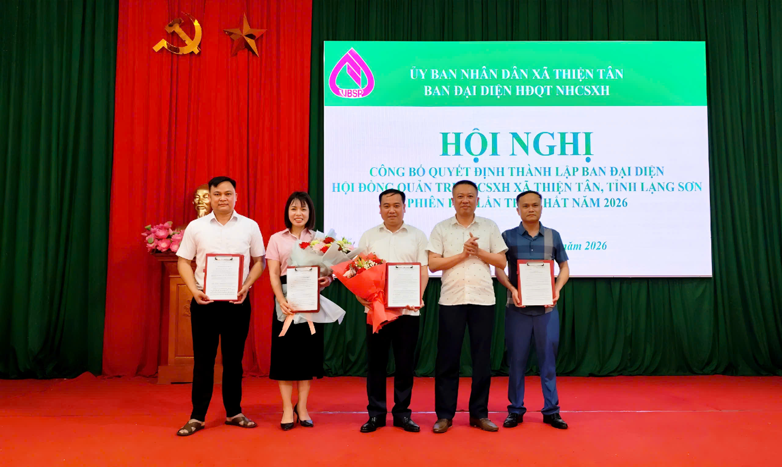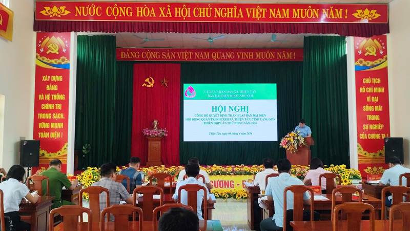 XÃ THIỆN TÂN TỔ CHỨC HỘI NGHỊ CÔNG BỐ QUYẾT ĐỊNH THÀNH LẬP BAN ĐẠI DIỆN HỘI ĐỒNG QUẢN TRỊ NHCSXH XÃ THIỆN TÂN VÀ PHIÊN HỌP THỨ NHẤT NĂM 2026