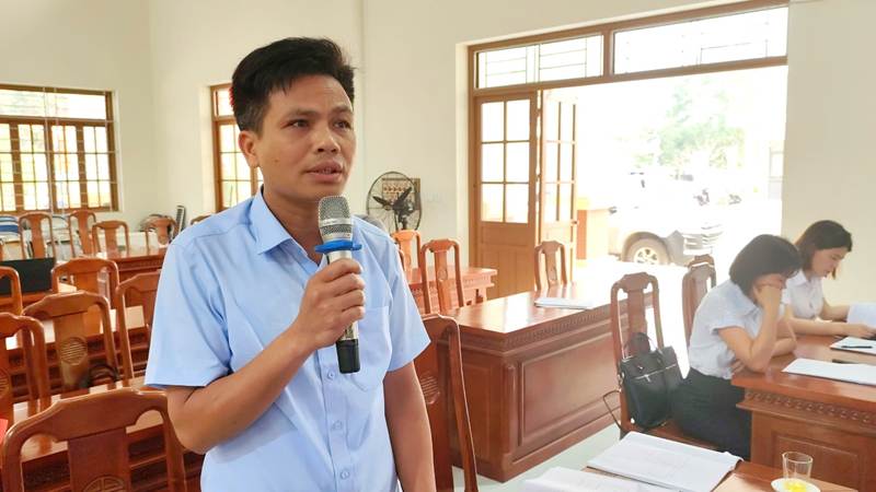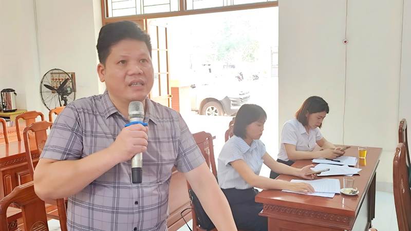Đồng chí Nguyễn Quốc Thắng, Bí thư Đảng uỷ, Chủ tịch HĐND xã phát biểu giao nhiệm vụ cho Ban đại diện Hội đồng quản trị Ngân hàng CSXH xã Thiện Tân