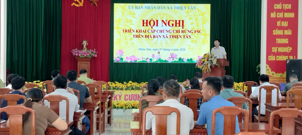 Sáng ngày 07/4/2026, UBND xã Thiện Tân phối hợp với Hạt Kiểm lâm khu vực Hữu Lũng, Công ty TNHH Vân Nham và đơn vị tư vấn tổ chức Hội nghị triển khai cấp chứng chỉ rừng FSC trên địa bàn xã.