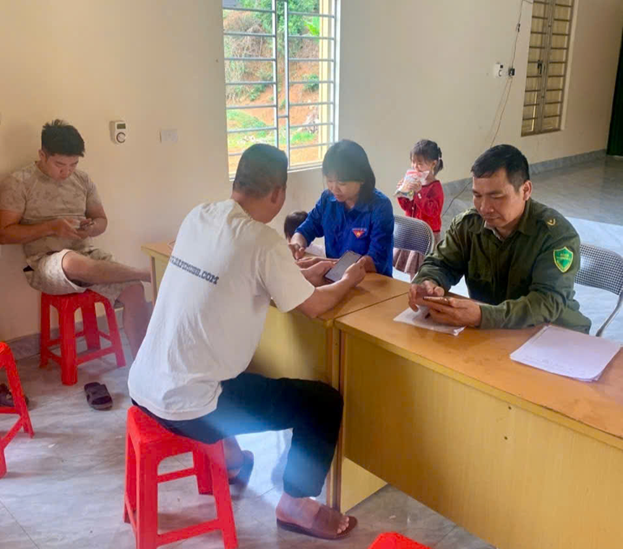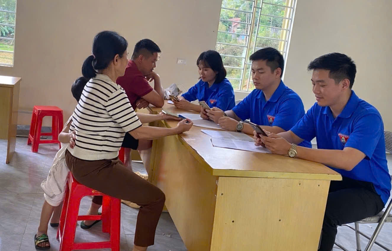 Các tổ công tác trực tiếp hỗ trợ, hướng dẫn công dân cài đặt và tích hợp tài khoản an sinh xã hội trên ứng dụng VNeID tại địa bàn xã