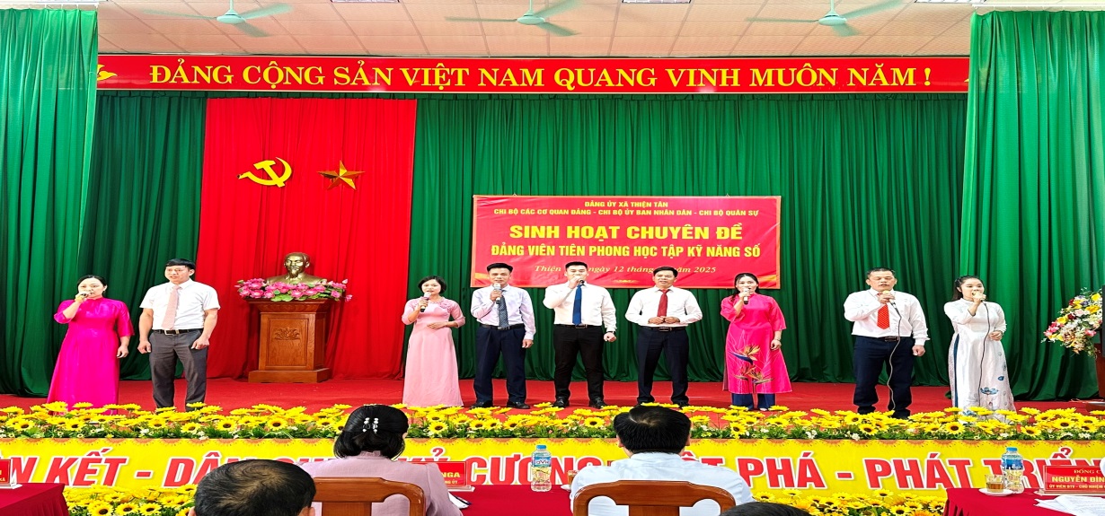 Thực hiện chương trình công tác năm 2025 của Đảng ủy xã Thiện Tân và kế hoạch sinh hoạt chuyên đề của chi bộ, Chiều ngày 12/11/2025 Chi bộ Các cơ quan Đảng – Chi bộ UBND xã – Chi bộ Quân sự xã phối hợp tổ chức sinh hoạt chuyên đề với chủ đề: “Đảng viên tiên phong học tập kỹ năng số”