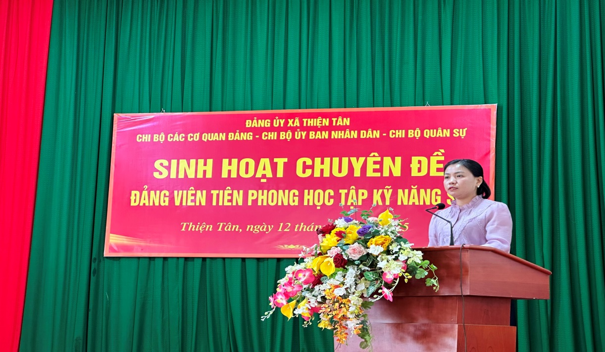 Phát biểu tại buổi sinh hoạt, đồng chí Nguyễn Tố Nga – Phó Bí thư Thường trực Đảng ủy xã Thiện Tân nhấn mạnh: “Đảng viên phải là lực lượng tiên phong trong chuyển đổi số, không chỉ nắm vững kỹ năng công nghệ mà còn phải tích cực hướng dẫn, hỗ trợ người dân tiếp cận các dịch vụ số của chính quyền, góp phần xây dựng chính quyền điện tử, xã thông minh.” Trong giai đoạn hiện nay, việc nâng cao kỹ năng số không chỉ là yêu cầu tất yếu mà còn là tiêu chí thể hiện vai trò tiên phong, gương mẫu của người đảng viên. Mỗi cán bộ, đảng viên cần tích cực học tập, chủ động thích ứng, góp phần xây dựng chính quyền số, xã hội số và công dân số tại xã Thiện Tân.”