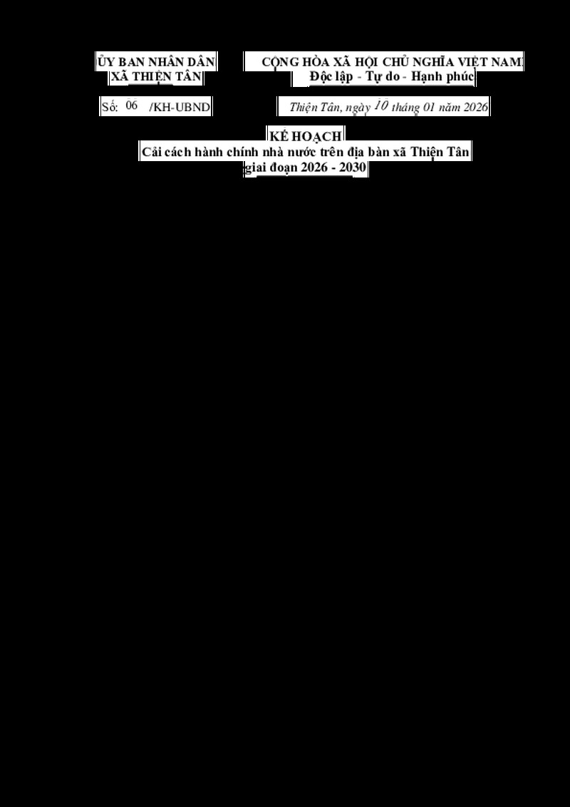 Kế hoạch cải cách hành chính nhà nước trên địa bàn xã Thiện Tân giai đoạn 2026 - 2030