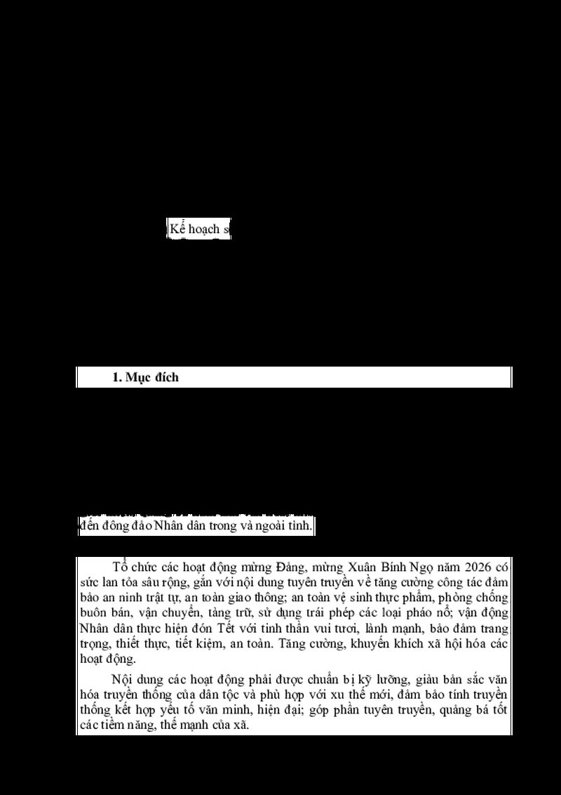 | Tiêu đề văn bản | Kế hoạch tổ chức các hoạt động mừng Đảng, mừng Xuân Bính Ngọ năm 2026 trên địa bàn xã Thiện Tân | ||