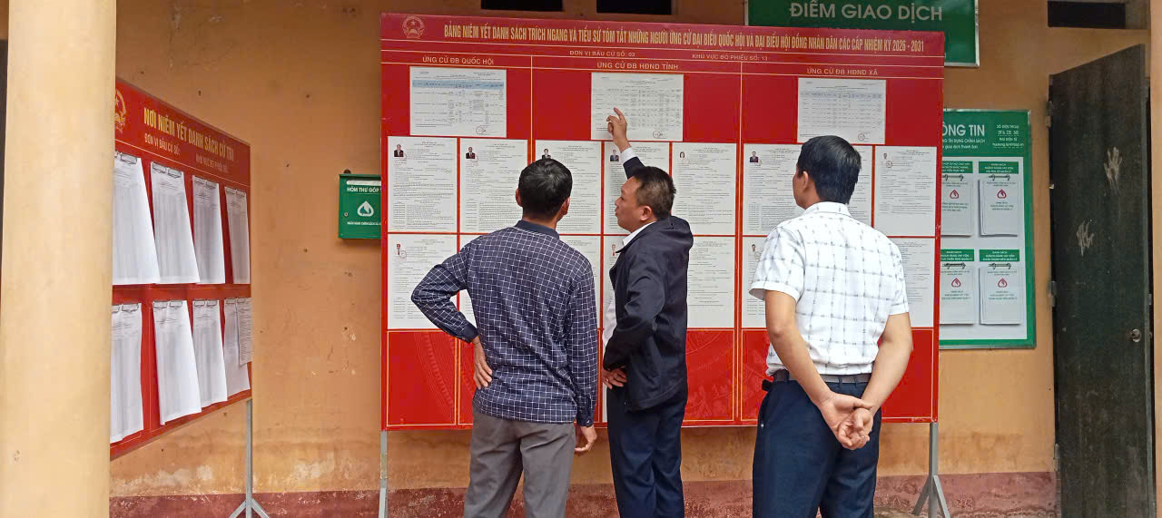 Tại các điểm kiểm tra, đồng chí Bí thư Đảng ủy xã đã nghe các Tổ bầu cử ở các thôn, báo cáo tiến độ triển khai các nhiệm vụ trọng tâm như: rà soát, lập và niêm yết danh sách cử tri; chuẩn bị cơ sở vật chất, trang trí khu vực bỏ phiếu; bố trí hòm phiếu, vệ sinh môi trường; tổ chức tuyên truyền trực quan tại khu vực bỏ phiếu…
