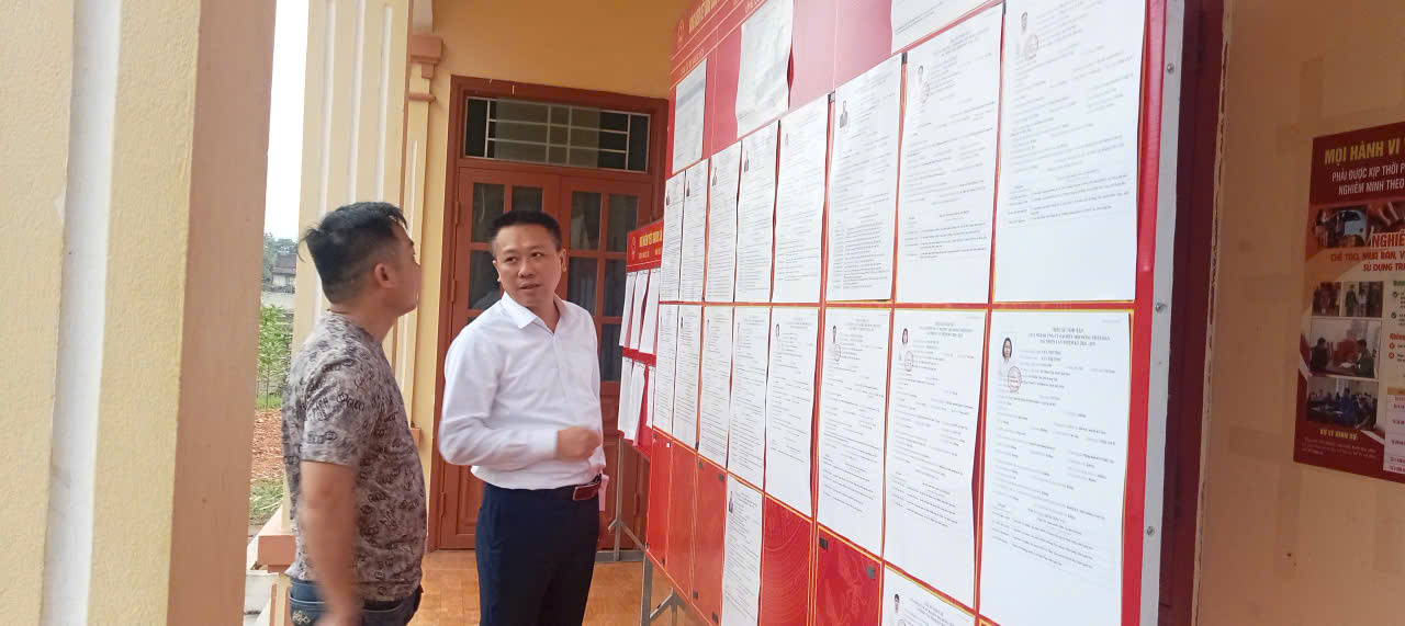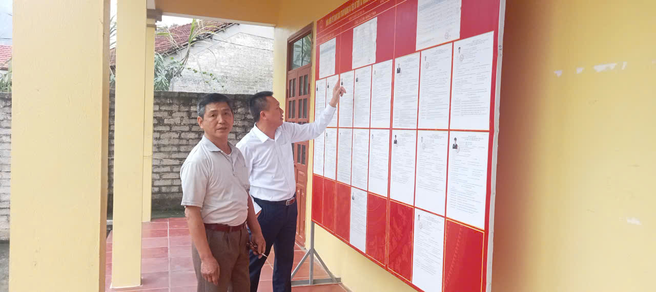 Đồng chí Bí thư Đảng ủy xã kiểm tra công tác bầu cử tại thôn Hợp Thành
