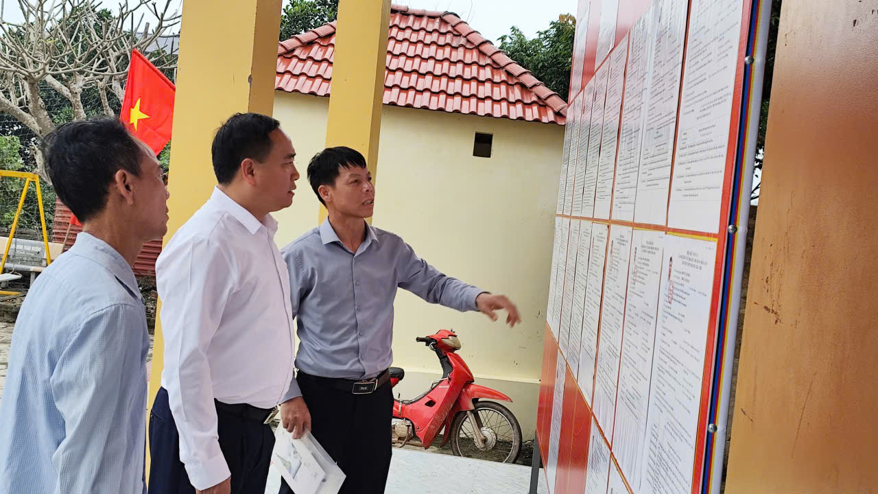Đồng chí Lý Hoàng Long, Phó Bí thư Đảng uỷ, Chủ tịch UBND xã, Chủ tịch Ủy Ban bầu cử xã kiểm tra tại thôn Liên Phương