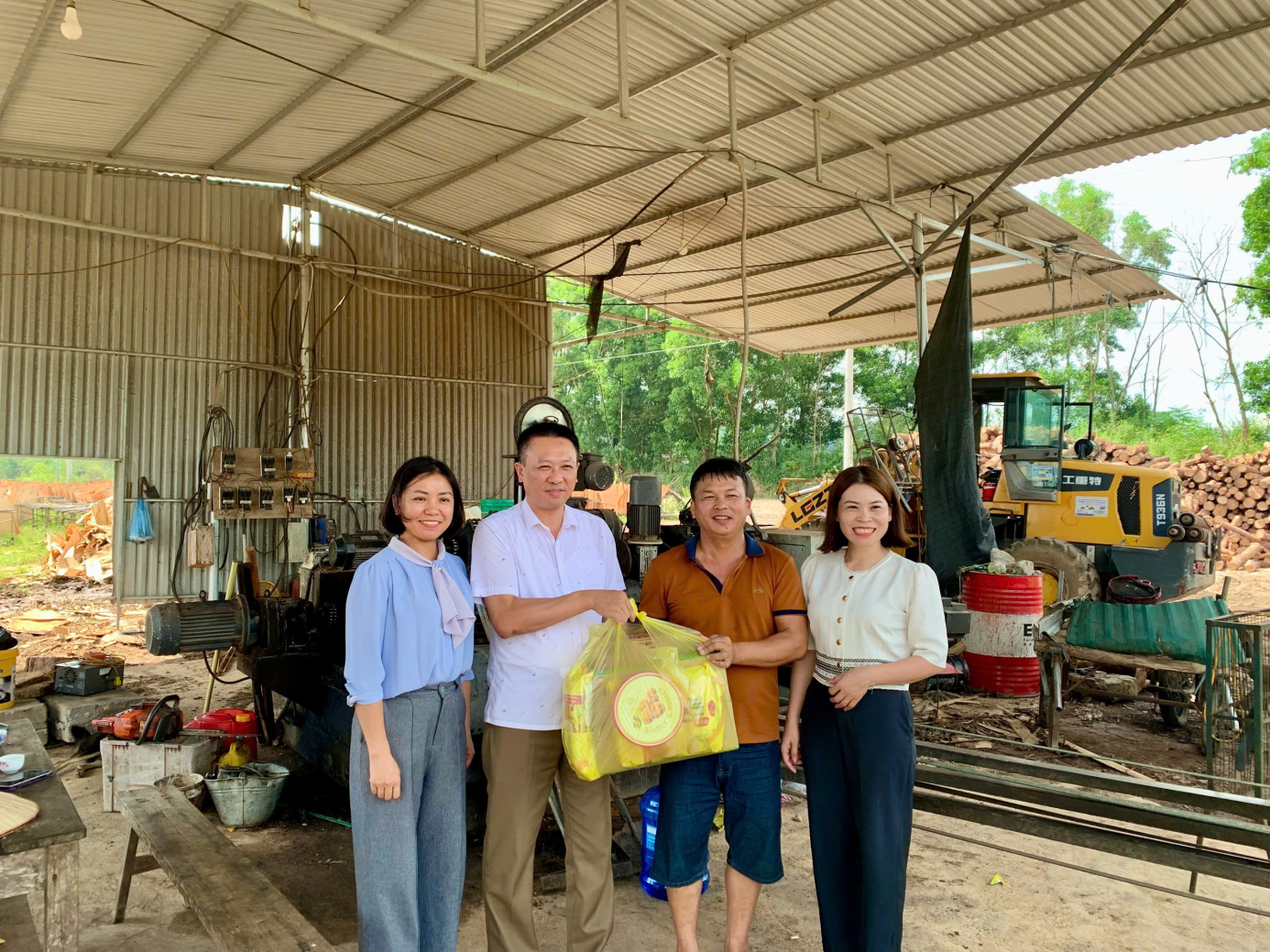 Ảnh: Đồng chí Nguyễn Quốc Thắng, Bí thư Đảng ủy (hình thứ 2 từ bìa trái qua) thăm, tặng quà doanh nghiệp trên địa bàn xã