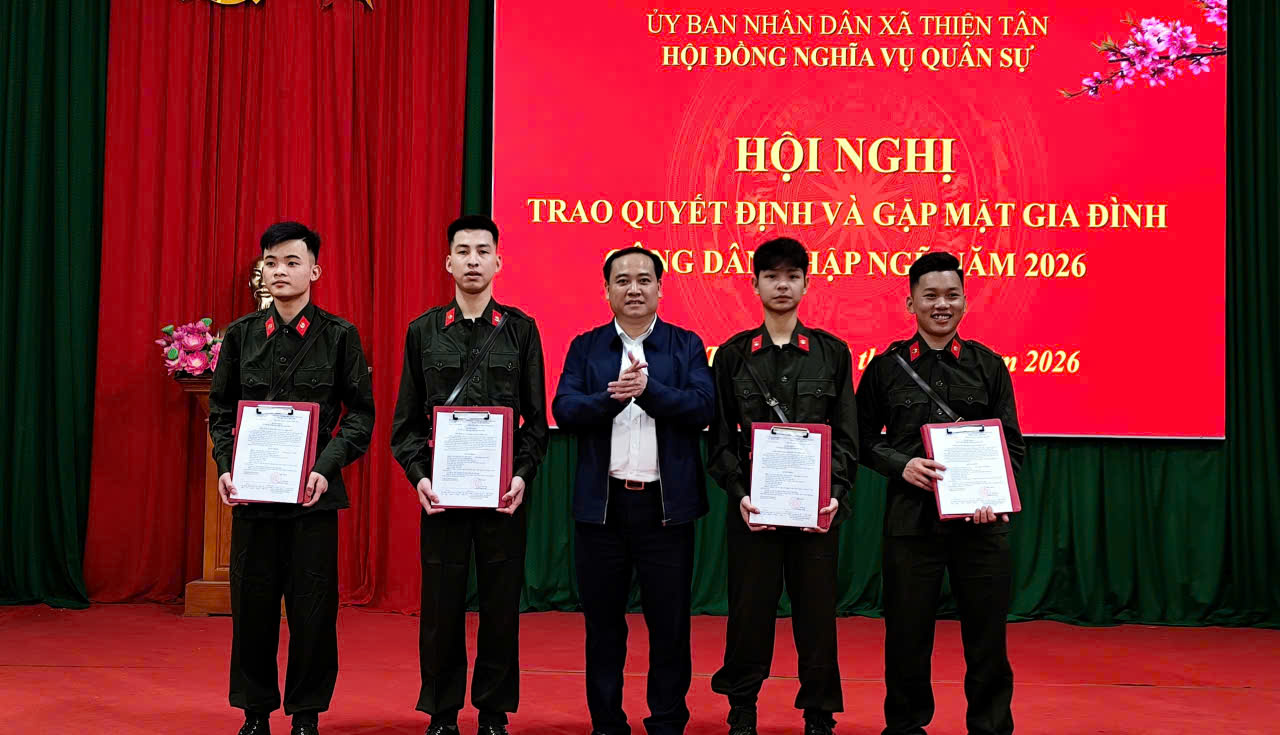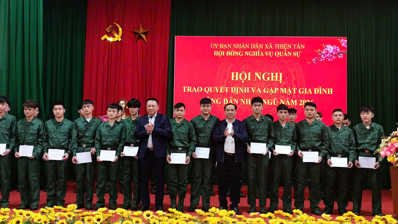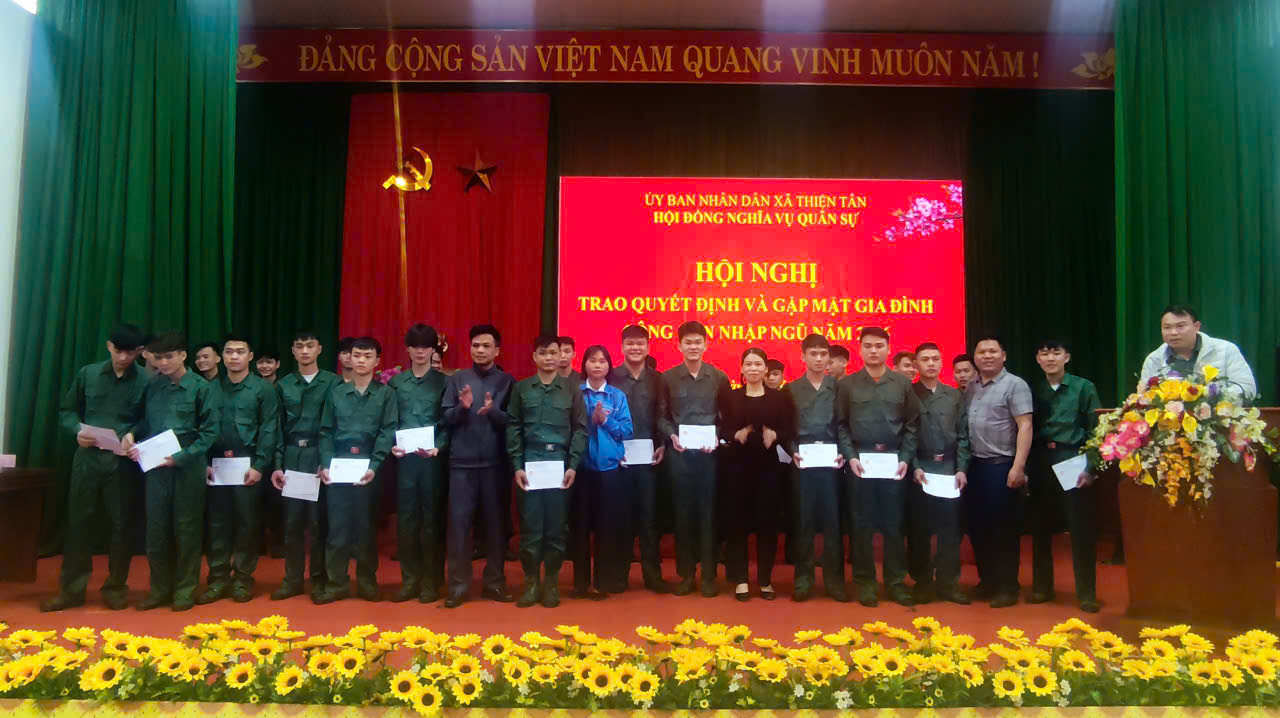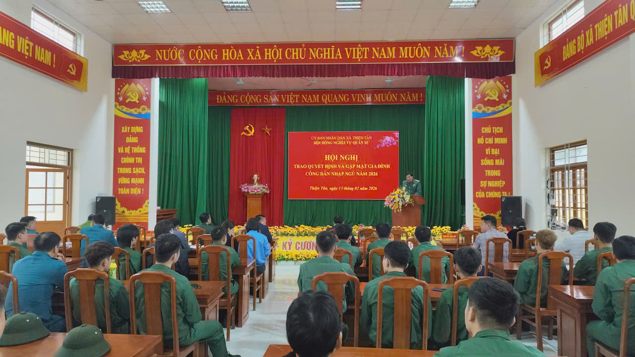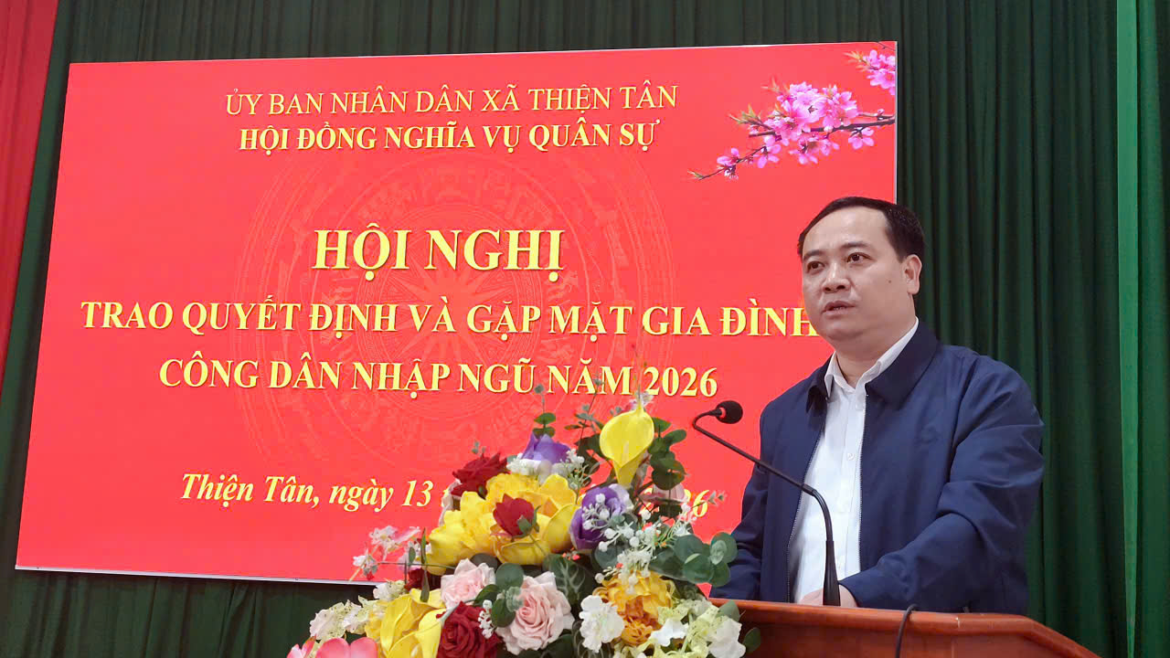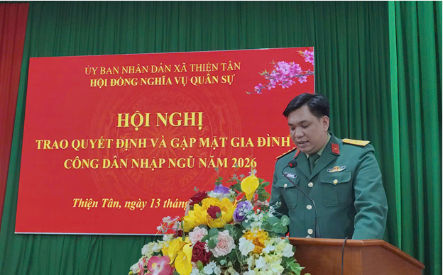 Chiều ngày 13/2, Hội đồng nghĩa vụ quân sự xã Thiện Tân tổ chức Hội nghị trao quyết định và gặp mặt gia đình, công dân nhập ngũ năm 2026. Dự hội nghị có các đồng chí lãnh đạo Đảng uỷ, HĐND, UBND, UBMTTQ xã; các thành viên Hội đồng Nghĩa vụ quân sự xã; đại diện lãnh đạo các ban, ngành, đoàn thể; các công dân nhập ngũ và đại diện các gia đình có công dân nhập ngũ năm 2026.