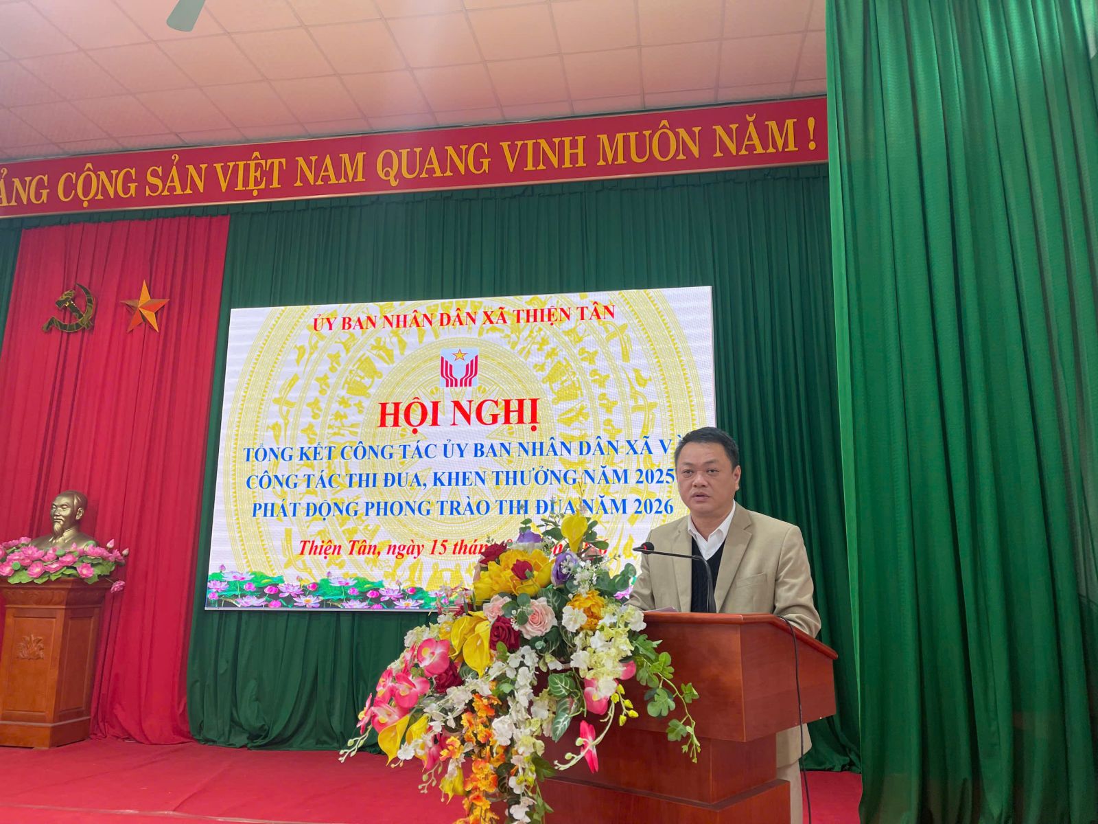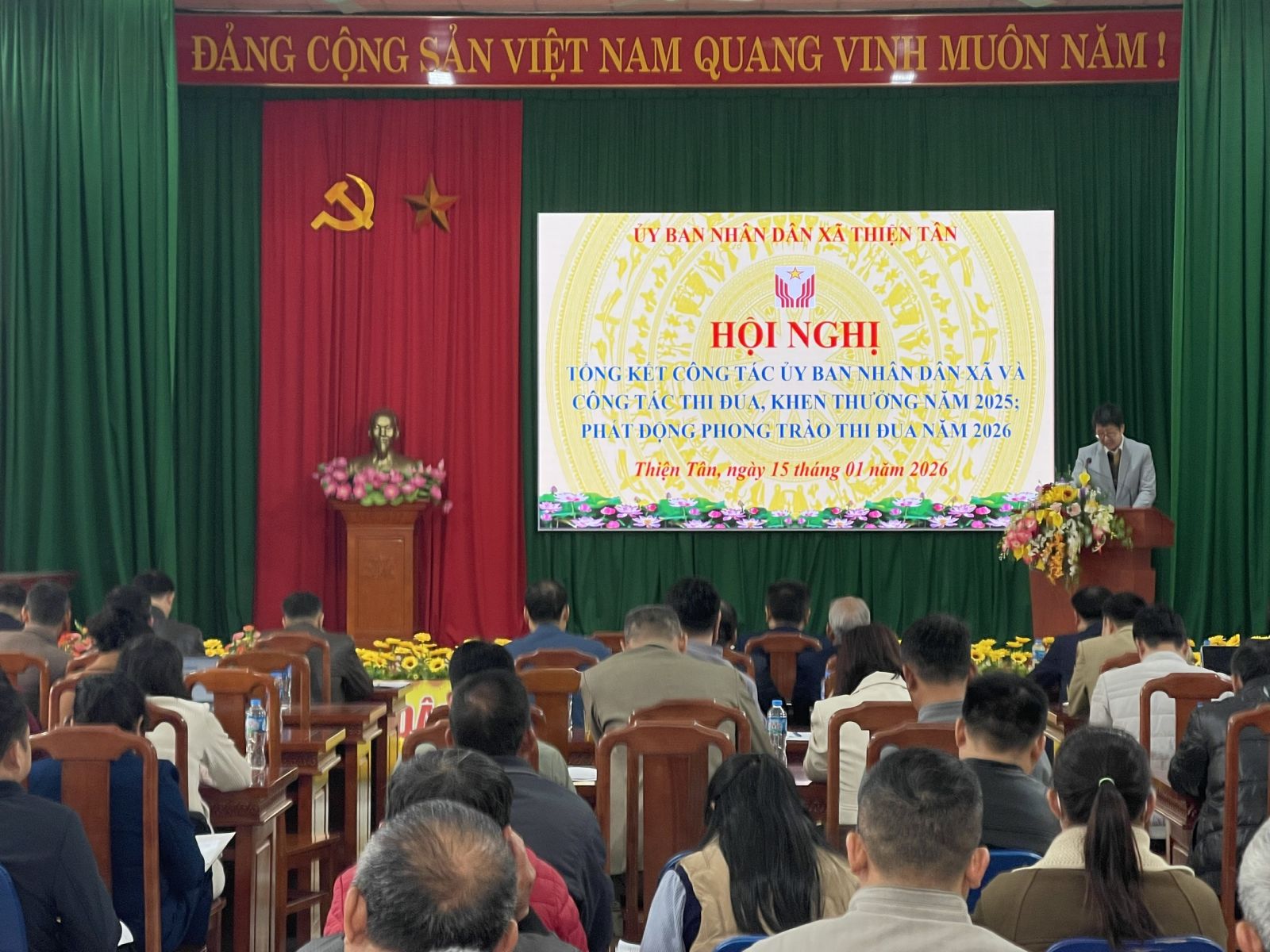 Sáng ngày 15/01/2026, UBND xã Thiện Tân đã tổ chức hội nghị tổng kết công tác UBND xã và công tác thi đua, khen thưởng năm 2025; phát động phong trào thi đua yêu nước năm 2026.